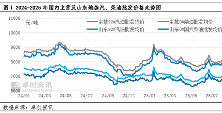 月末,国际贸易协议谈判向好,原油市场宏观环境明显改善,且地缘局势紧张情绪增加,多重利好支撑下,原油价格出现突破性上涨。虽然月底零售限价达成搁浅后,但在原油走势向好带动下,新周期上调预期浓厚。叠加多数卖方单位注重利润情况,汽柴油批发价格多出现跟随推涨操作。不过终端需求疲软情况始终存在,下游客户参与市场积极性难有改善,市场成交未能达成预期水平,整体呈现有价无市状态,这也限制了汽柴油批发价格推涨的幅度。月末,汽柴油批发价格累计回涨幅度在50-100元/吨。虽然回涨幅度有限,但在零售限价搁浅预期下,为汽柴油批零价差收窄奠定基础。